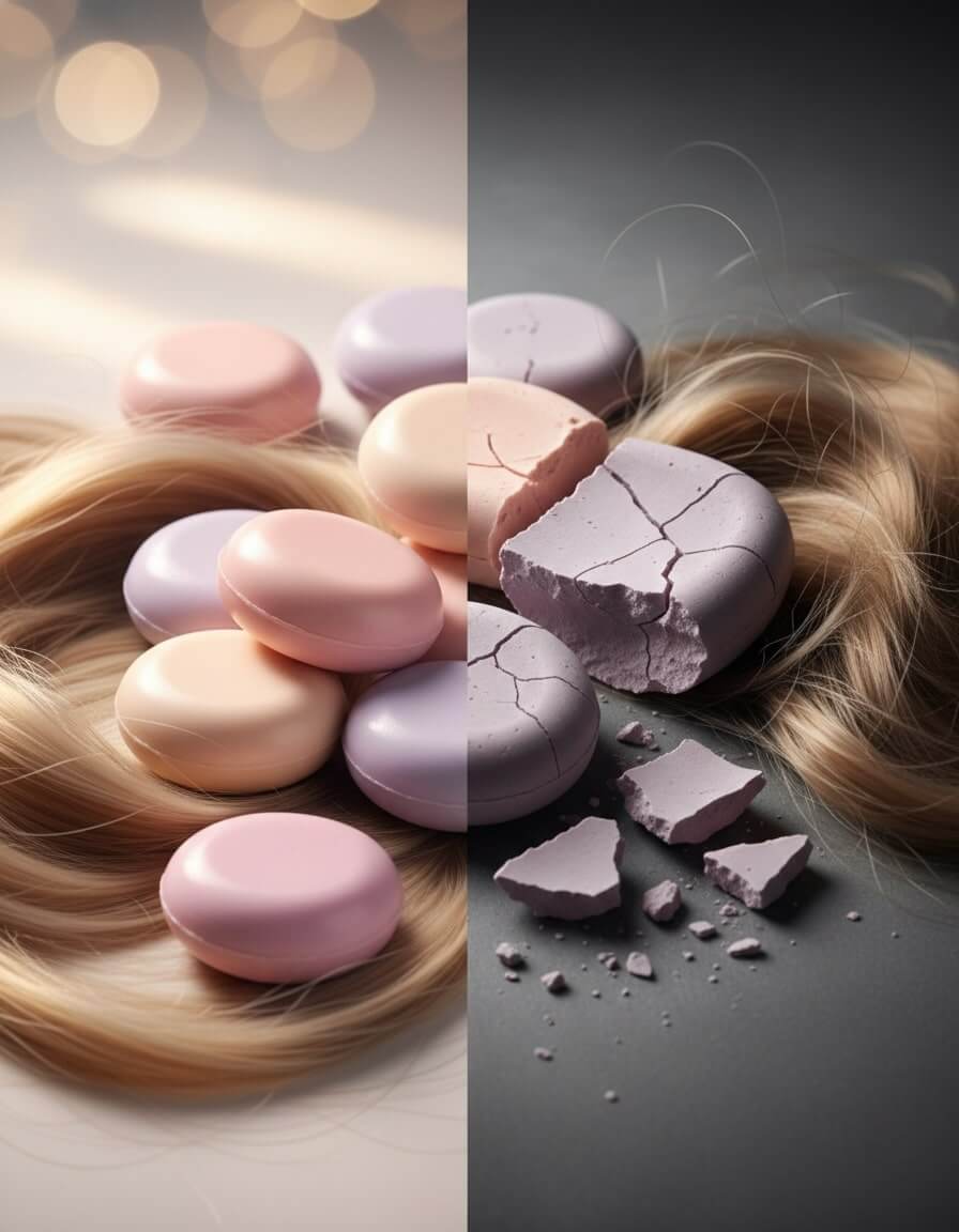 - La majorité des shampoings solides présentent un pH alcalin supérieur à 7, incompatible avec le pH naturel du cuir chevelu (≈5,5), ouvrant les écailles et rendant les cheveux rêches, ternes ou cassants.